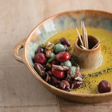 Stoneware Dish with toothpick holder